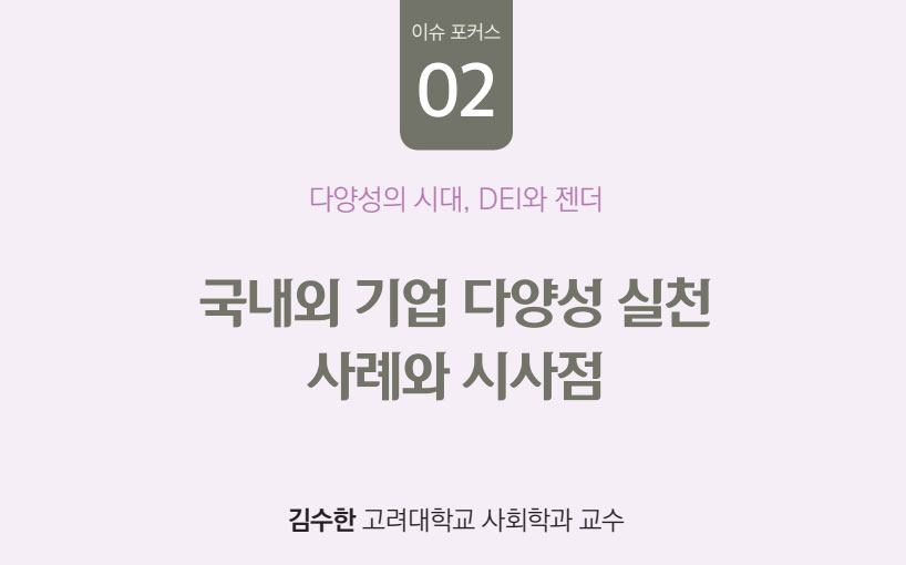 이 3편의 글은 2024년 5월 14일에 있었던 한국양성 평등교육진흥원의 특별 세미나 <다양성의 시대, DEI와 젠더>의 발표 내용을 기초로 토론과 질의에서 나온 의견들을 반영하여 수정·보완된 논문입니다.