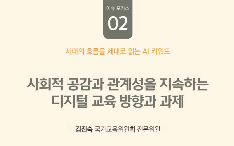 제2호 기획 특집은 디지털 시대에 보다 나은 미래로 향할 수 있는 방안으로 AI 시대의 교육을 둘러싼 제반 이슈와 과제를 모색해 보았다. 성별 인식의 균형을 잡는 디지털 기술 확장을 위해서 인공지능의 편향성과 젠더 문해력을 되짚어 보고 사회적 공감과 관계성을 지속하는 디지털 교육의 방향과 과제를 제시하였고, 더 나은 사회를 향한 인공지능 시대 준비와 전략을 3편의 논문에 실었다.