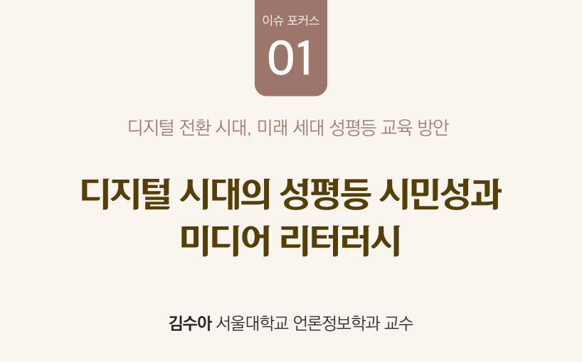 ※ 아래 3편의 글은 2025년 10월 17일에 있었던 한국양성평등교육 진흥원의 특별 세미나 <디지털 전환 시대, 미래 세대 성평등 교육 방안>의 발표 내용을 기초로 토론과 질의에서 나온 의견을 반영하여 수정·보완된 논문 입니다.